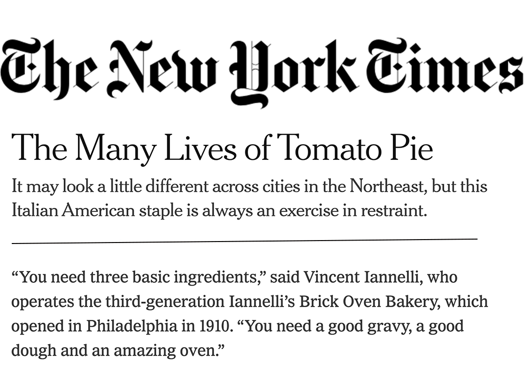 Iannelli's signature tomato pie is light, airy, and crisp, and a famous homemade red gravy. It’s a true staple of Philadelphia, and now there’s no need to travel to experience it.